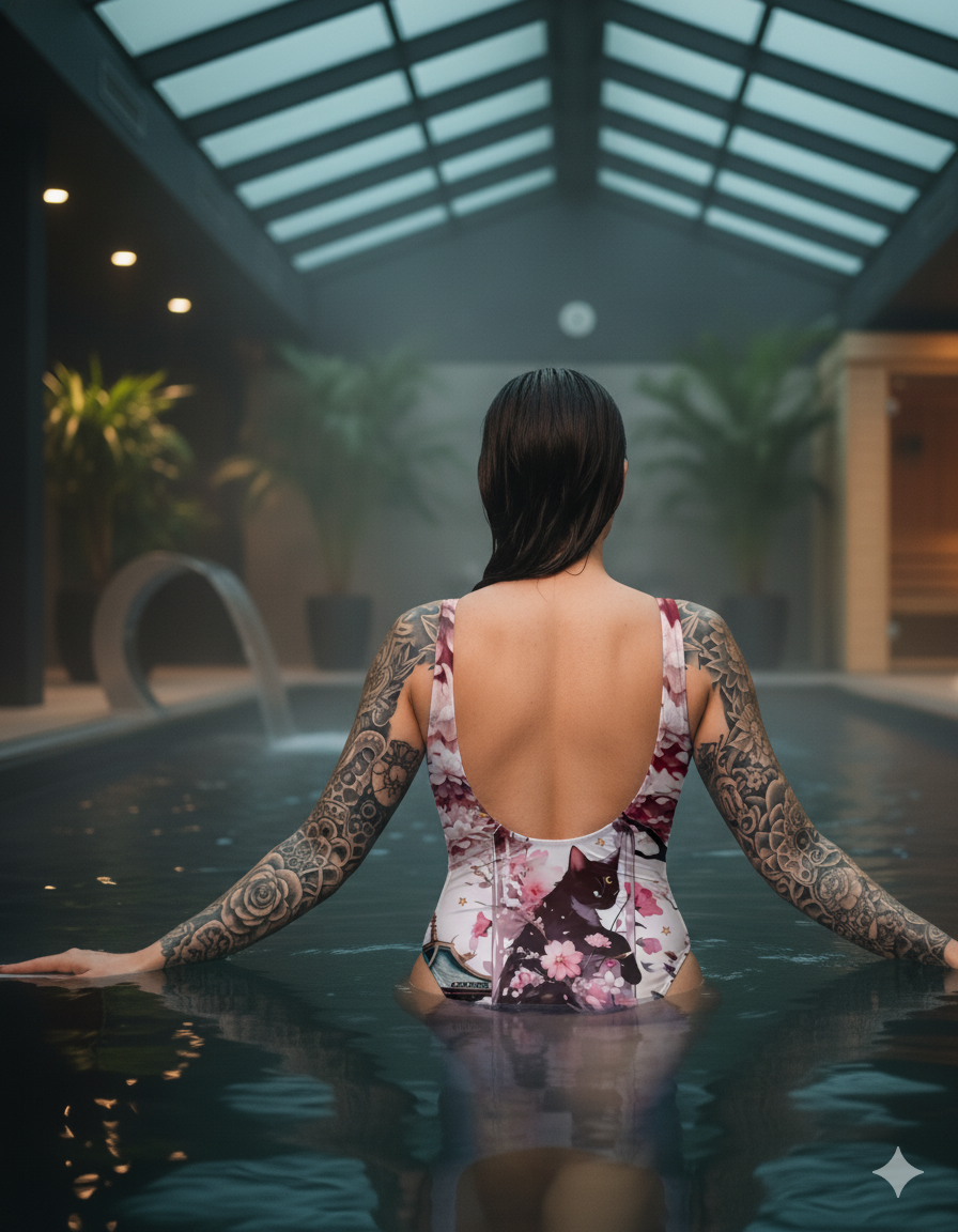 🌸 Traje de Baño Enterizo Sailor Kimono – Cerezo y Magia Lunar 🌙
