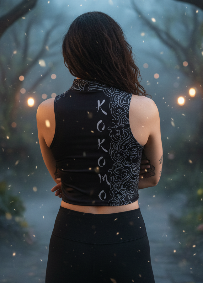 «Poder en cada detalle, versatilidad en cada giro.» El top Zenith redefine el concepto de ropa deportiva con su innovador diseño frontal inferior cruzado, que ofrece un ajuste anatómico único y una estética de vanguardia. Esta pieza reversible es una obra de arte por ambos lados: de un lado, la majestuosidad de un dragón místico entre flores de cerezo; del otro, la elegancia de caligrafía japonesa sobre un fondo de olas tradicionales.